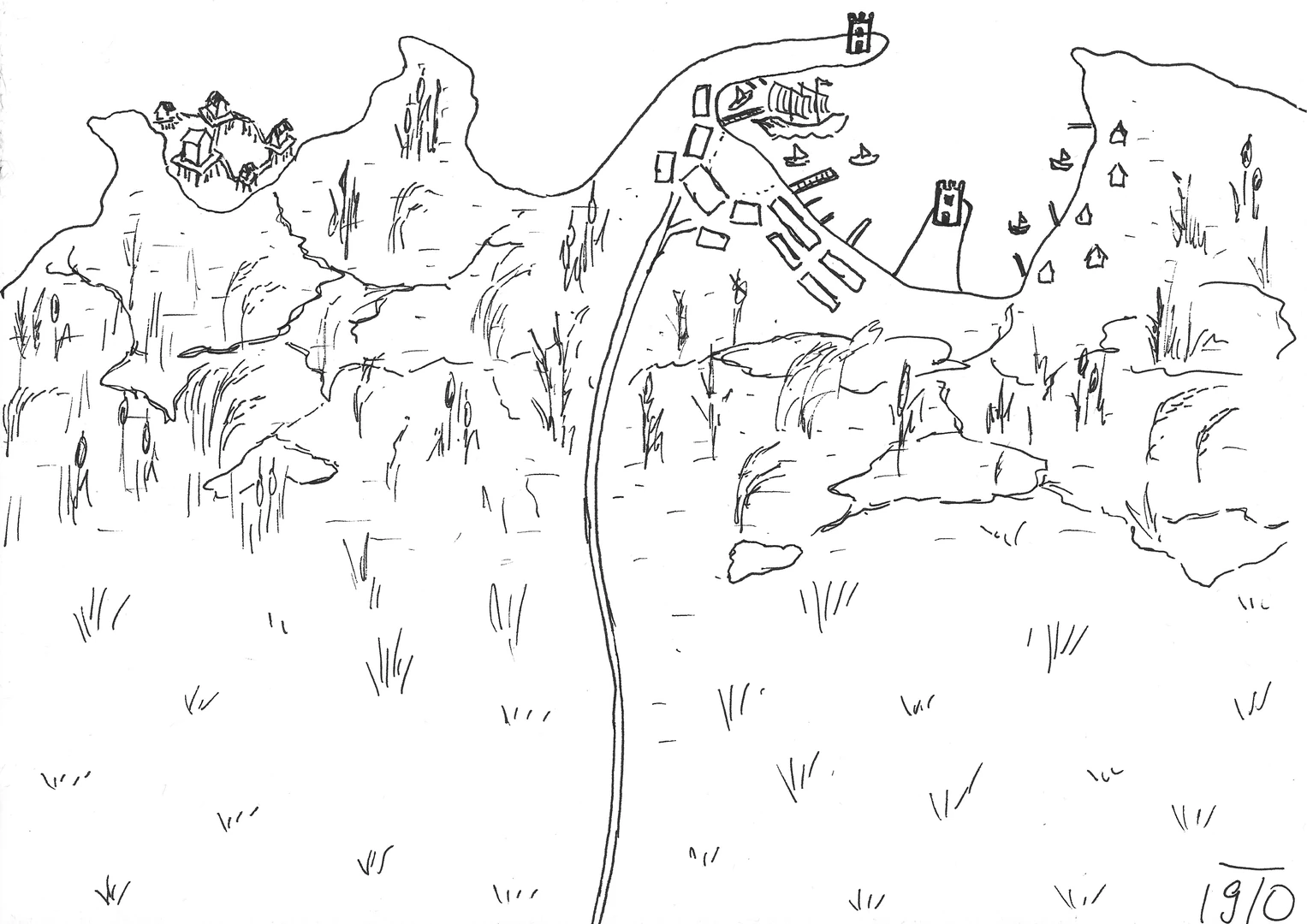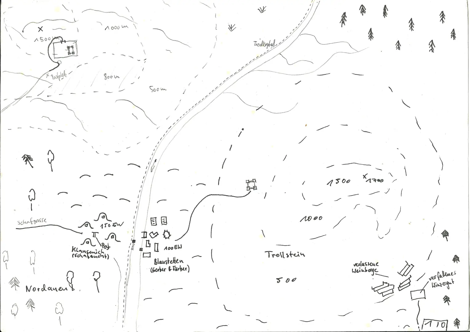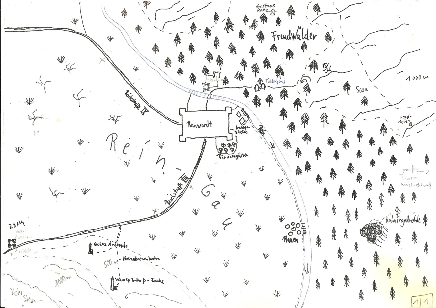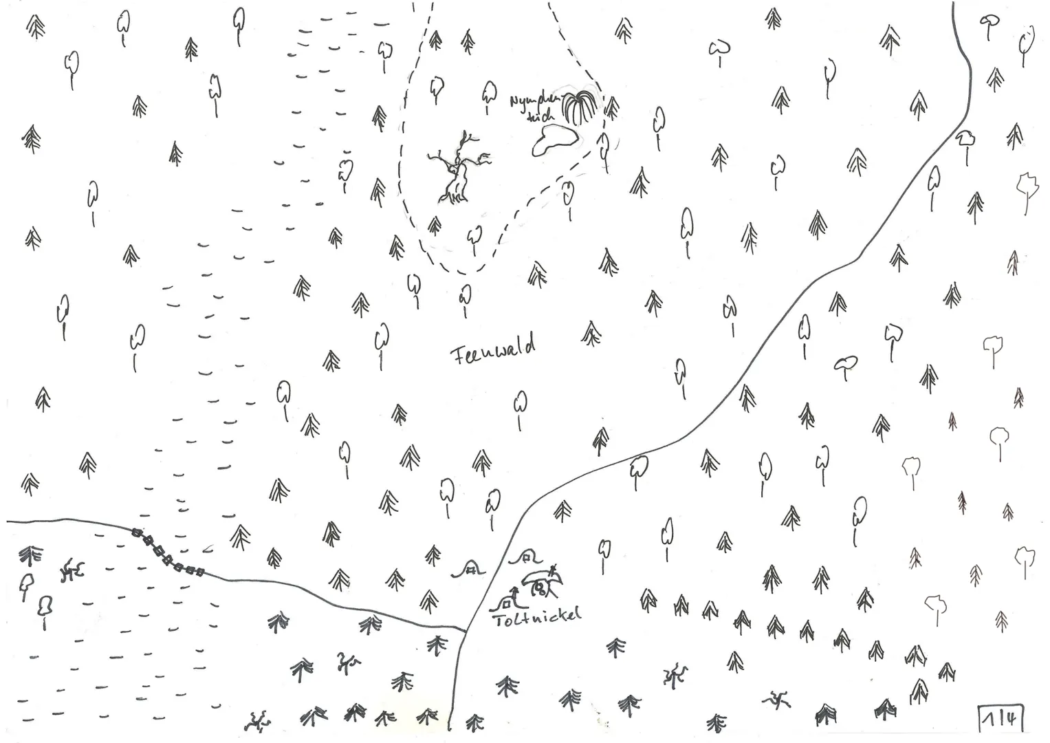 Hans will derweil den Vorrat, besser noch die Anfertigung von magischen Schriftrollen auf der Insel ankurbeln und sucht den Schriftführer auf. Der kann nach wie vor nur mit Restposten einfachster Zauberpergamente dienen, verrät aber, dass zwei Gestalten, die ihm Fröhlichen Horn weilen, nach Hans gefragt hätten.