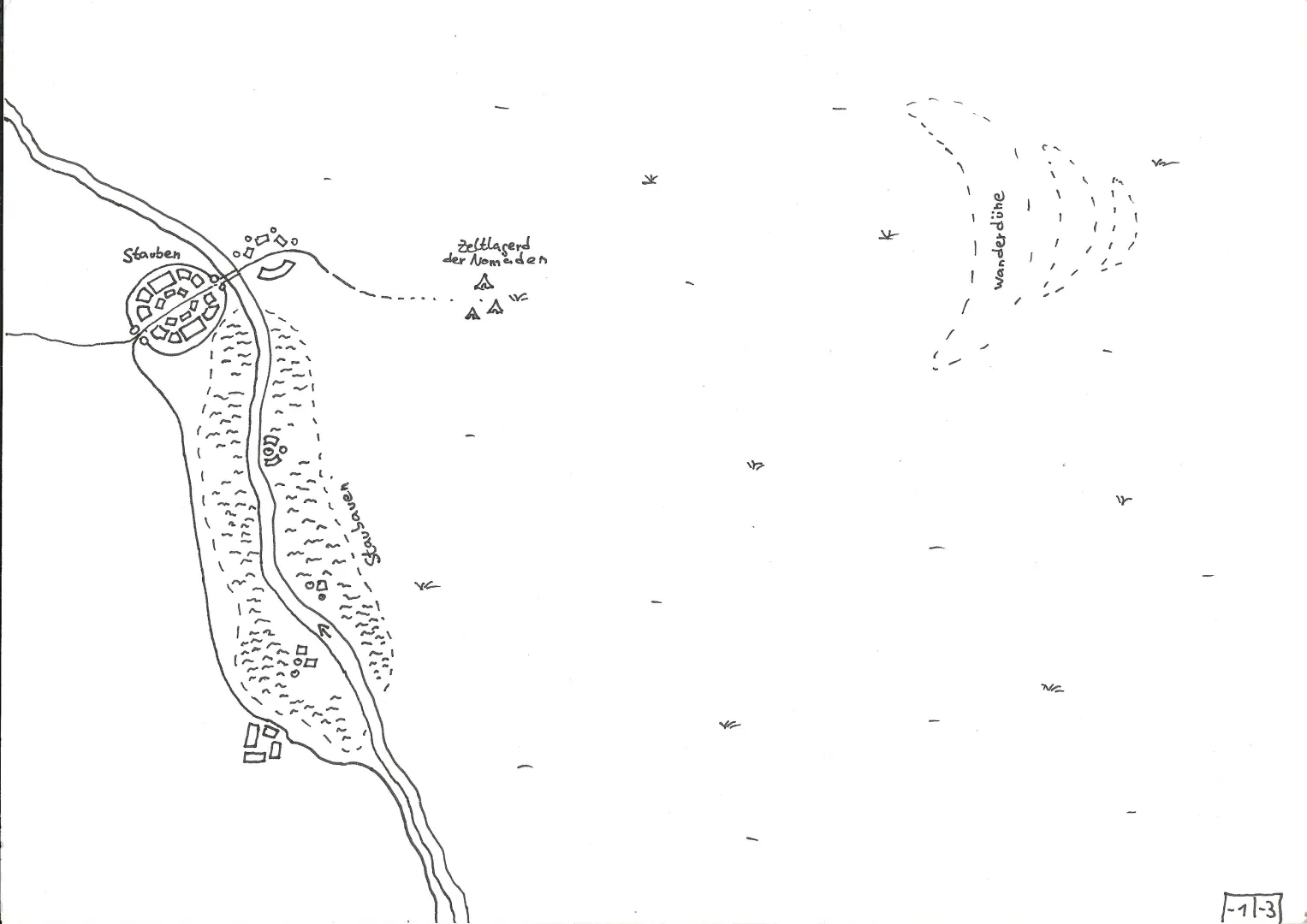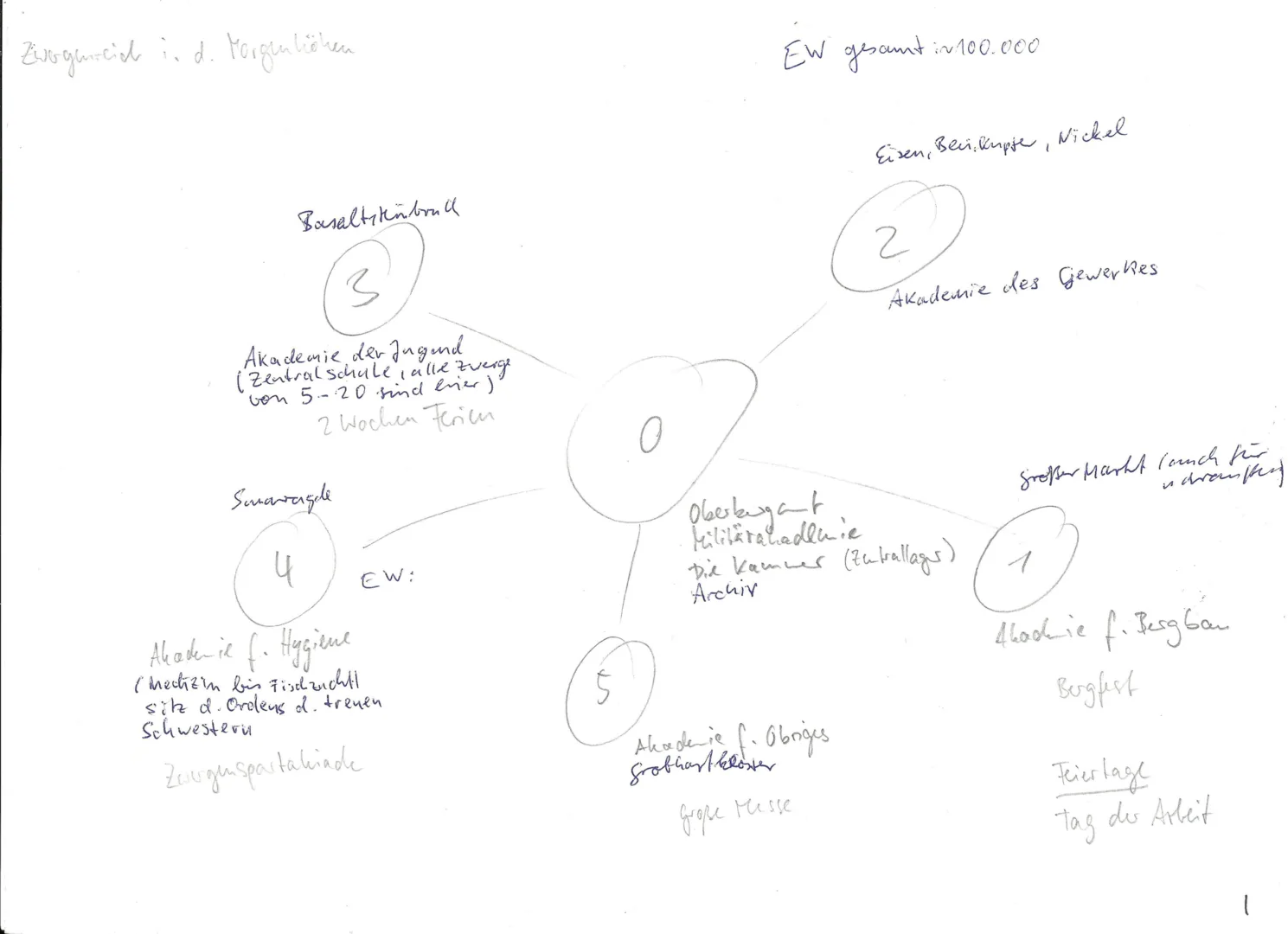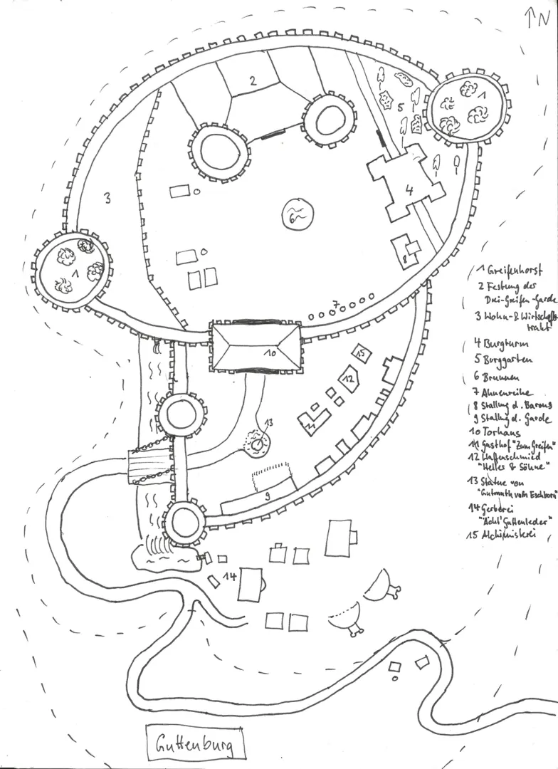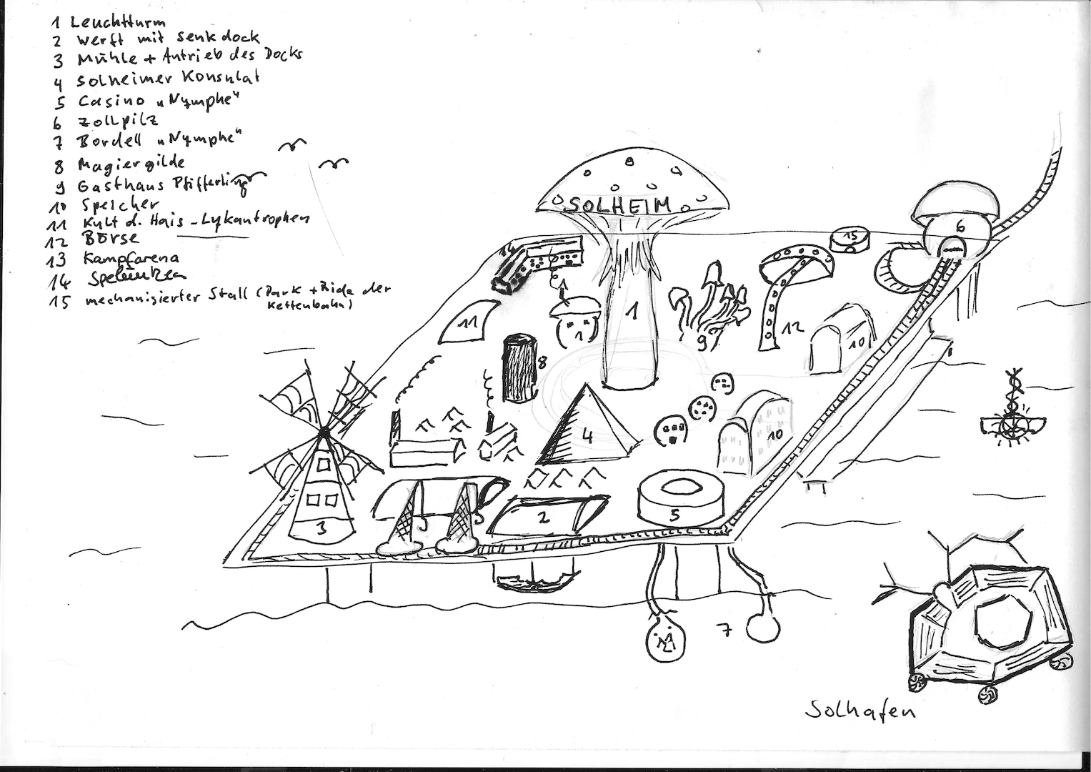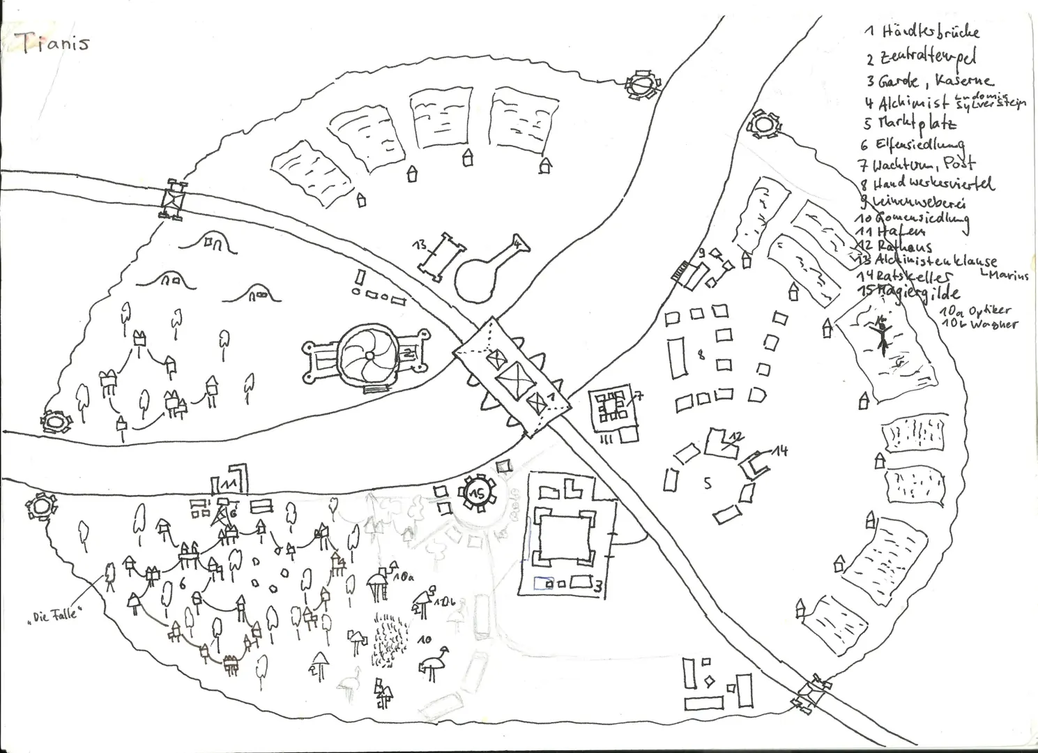 - Darin ein Zettel, kunstvoll kaligraphiert: Von Rodrigo an Mateo, über das Verschwinden des Walfängerstaates Arabatis, Werk des zwergischen Nestor-Ordens, ein Portal dahin, das mit drei Zahnrädern geöffnet werden könne, und schließlich verschlüsselte Informationen, für die Mateo das Dechiffriergerät besäße