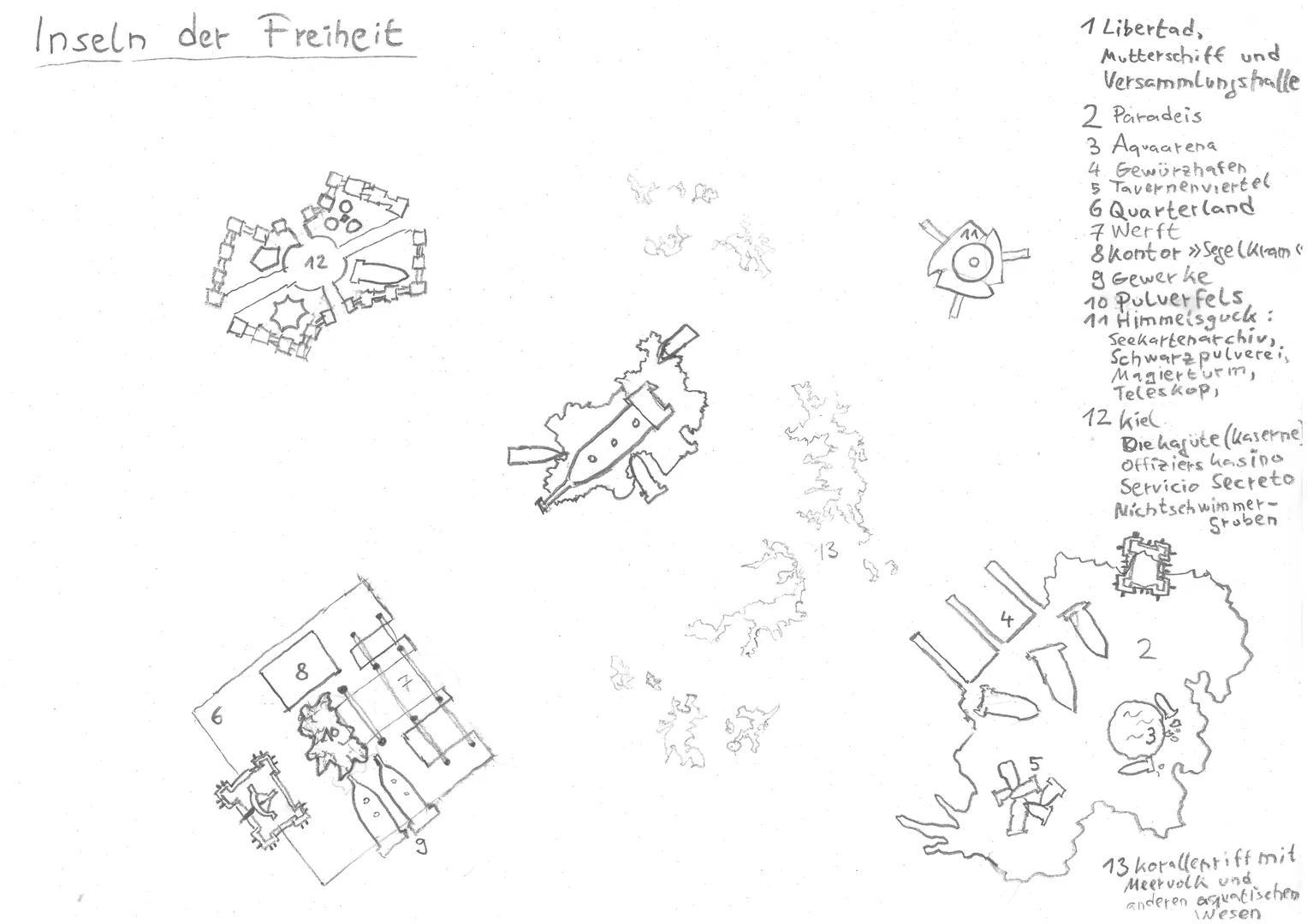 Die Lange Renate reist zu den Inseln der Freiheit. Der Kompass zeigt dahin.