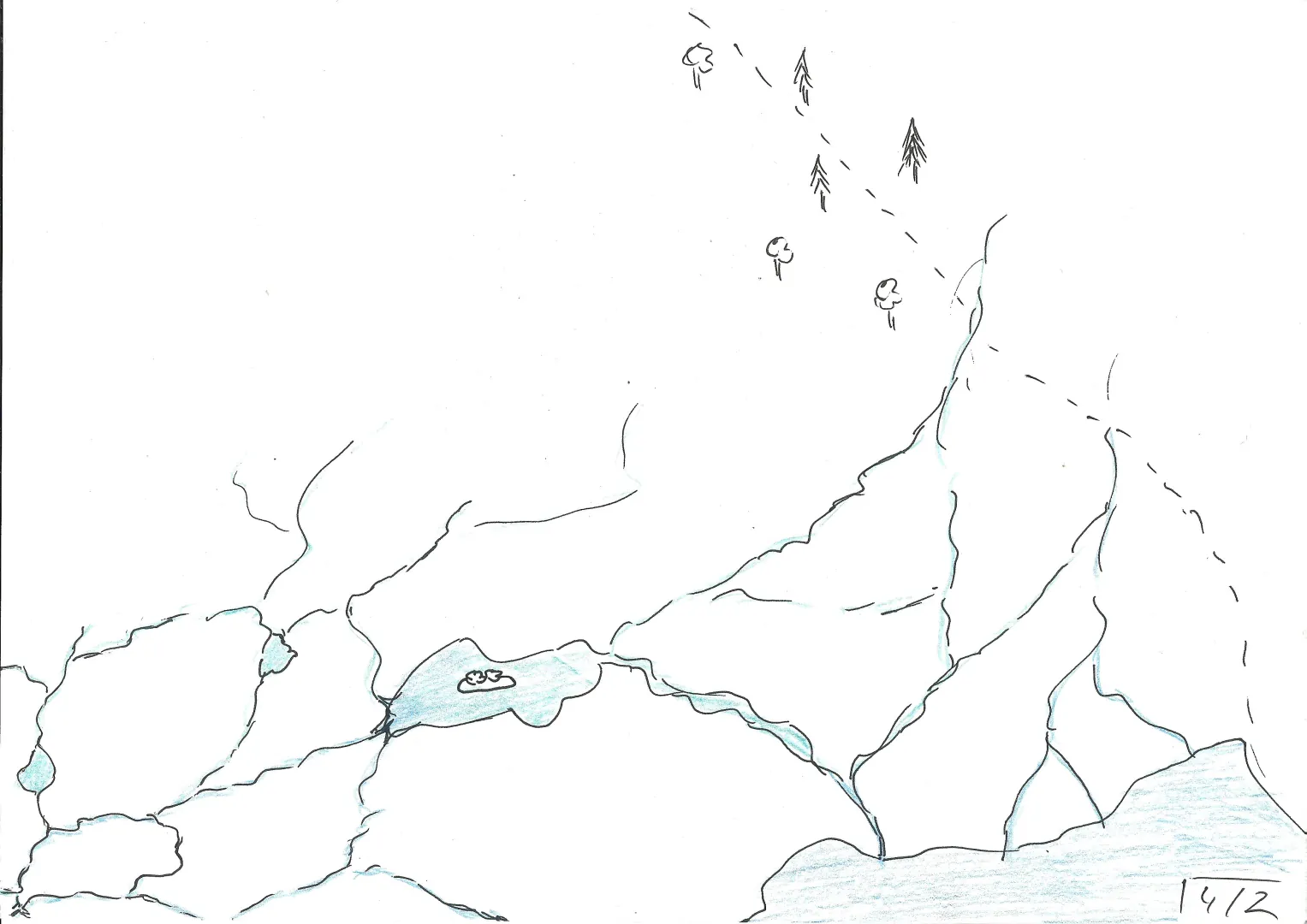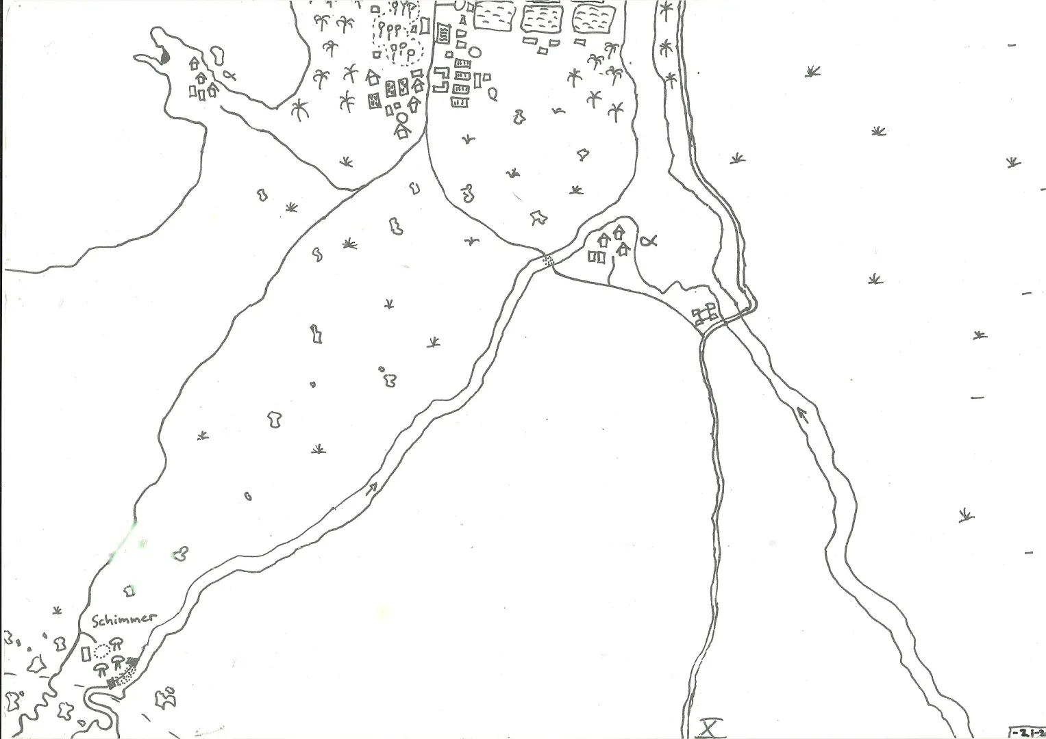Gex, Hans und Mimi setzen mit einem Dutzend aus der Mannschaft als Unterstützung über. Sechs der Leute erliegen den außergewöhnlichen Düften und kehren zurück zum Schiff. Bei der abendlichen Rast greift ein Aurumvorax das Lager an. Panisch und erblindet versucht er zu fliehen, wird aber mit vereinten Kräften zur Strecke gebracht. Sein Fleisch schmeckt zäh. Die Nacht vergeht ansonsten ereignislos.