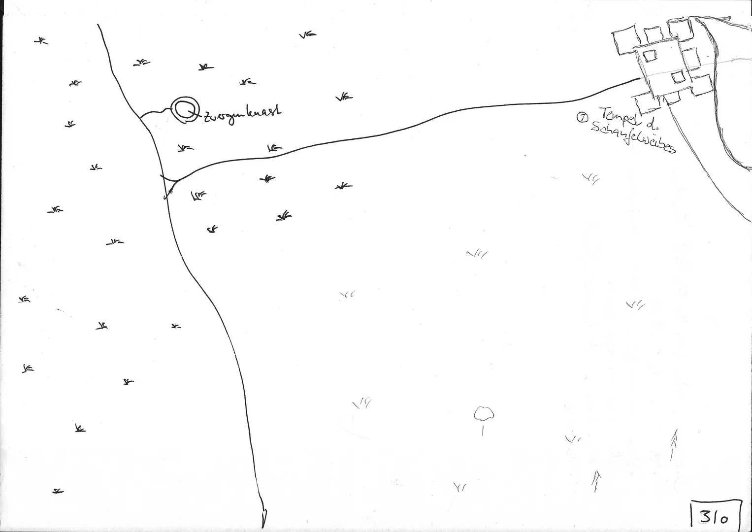 Die Reise geht weiter zum Tempel der See südwestlich von Unkklipp. Hedammu packt die Ehrfurcht im Angesicht der Tempelanlage, dem großen schwarzen Obelisken und dem knorrigen toten Baum auf dem Plateau des rauen Eilands im tosenden Wind. Er schreitet voran und schlägt den eisernen Ring an die Holzpforte, ein Kapuzenträger gewährt Einlass. Die Kuppelhalle wird von einem Wasserbecken dominiert, in das der Regen durch ein Loch in der Decke fällt. Unermüdlich in seiner Verachtung für Zwerge verzaubert Gex Grandolf, so dass dieser sich in Selbstverliebtheit ergeht und die Spiegelung seines Antlitzes im Wasserbecken bewundert.